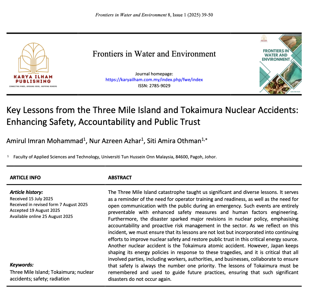 The Three Mile Island catastrophe taught us significant and diverse lessons. It serves as a reminder of the need of operator training and readiness, as well as the need for open communication with the public during an emergency. Such events are entirely preventable with enhanced safety measures and human factors engineering. Furthermore, the disaster sparked major revisions in nuclear policy, emphasising accountability and proactive risk management in the sector. As we reflect on this incident, we must ensure that its lessons are not lost, but rather incorporated into continuing efforts to improve nuclear safety and restore public trust in this critical energy source. Another nuclear accident is Tokaimura nuclear accident, although Japan keeps going to shape its energy policies in response to these tragedies, it is critical that all involved parties, including workers, authorities, and businesses, collaborate to ensure that safety is always the number one priority. The lessons of Tokaimura must be remembered and used to guide future practices, ensuring that such major disasters do not occur again.