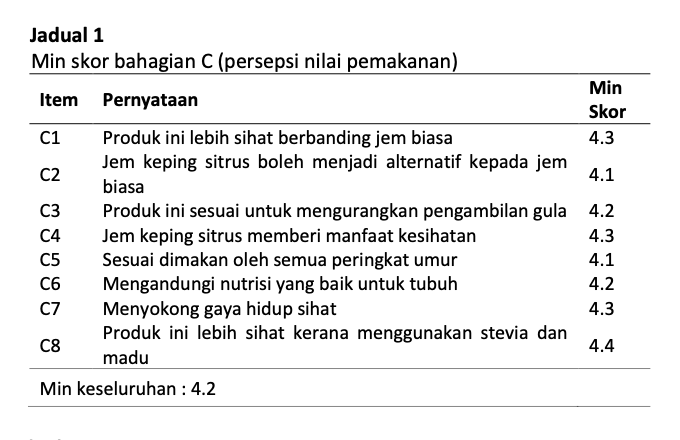 Tahap Penerimaan Terhadap Jem Keping Sitrus Sebagai Inovasi Makanan