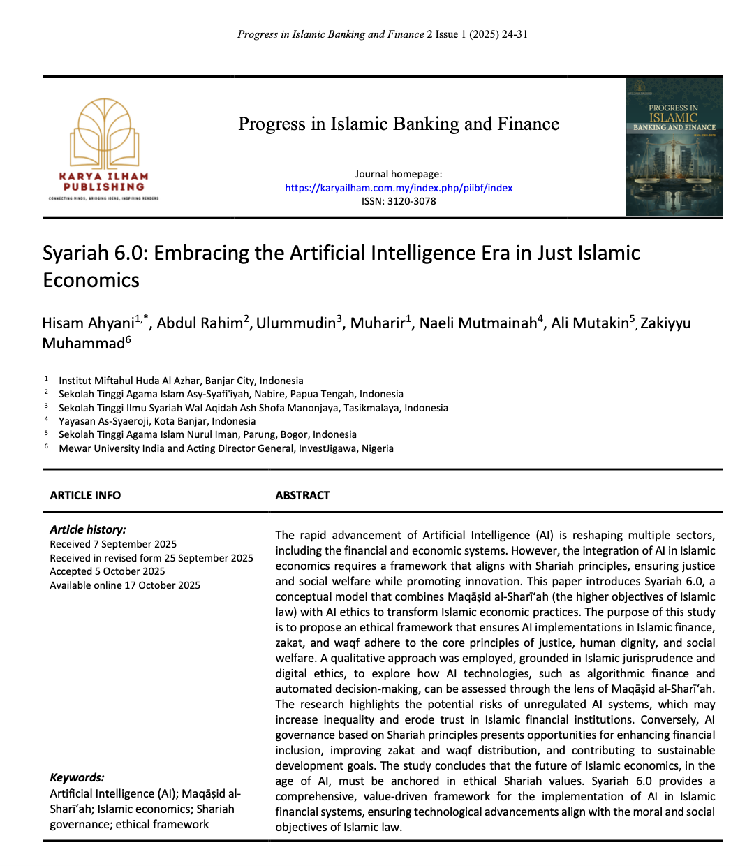 Progress in Islamic Banking and Finance (PIIBF) is an open-access, peer-reviewed scholarly journal. It provides a platform for academics, industry professionals, and policymakers to share research and developments in the domain of Islamic banking and finance.